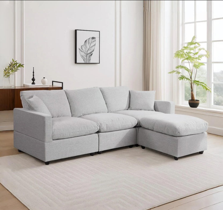 This 3 Seater Modular Sofa with Ottoman in grey offers deep, structured comfort wrapped in a calming, versatile tone.